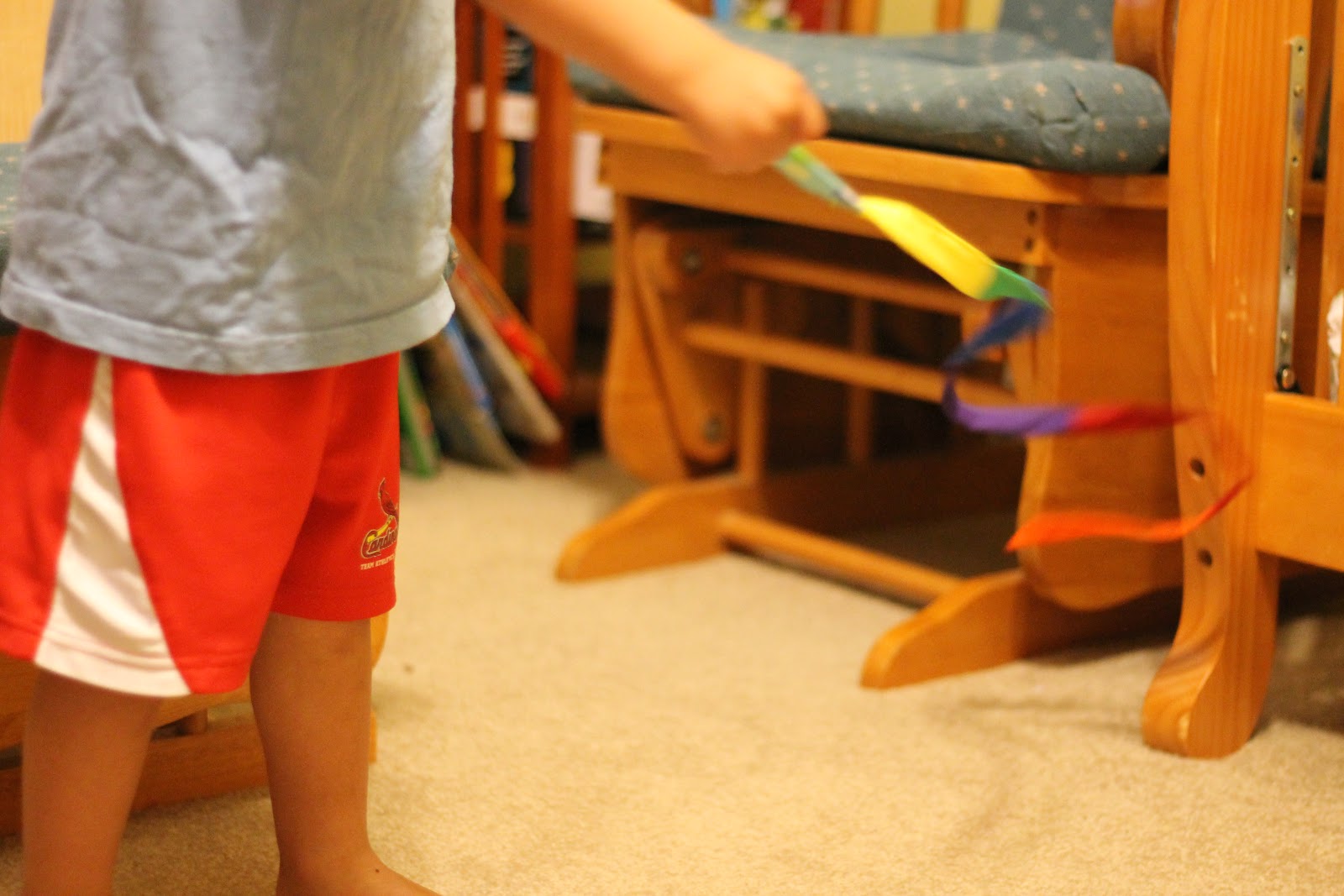 - Red, Orange, Yellow, Green, Blue, and Purple fabrics. Cut 1 piece 2 1/2" by 6 1/2" from each fabric.